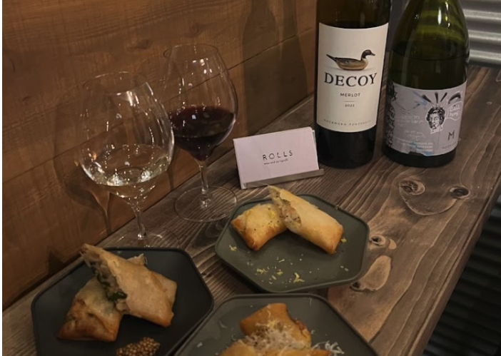 ROLLSは、テラスのように開放感のある店内で美味しいワインと春巻きをお楽しみいただけます。