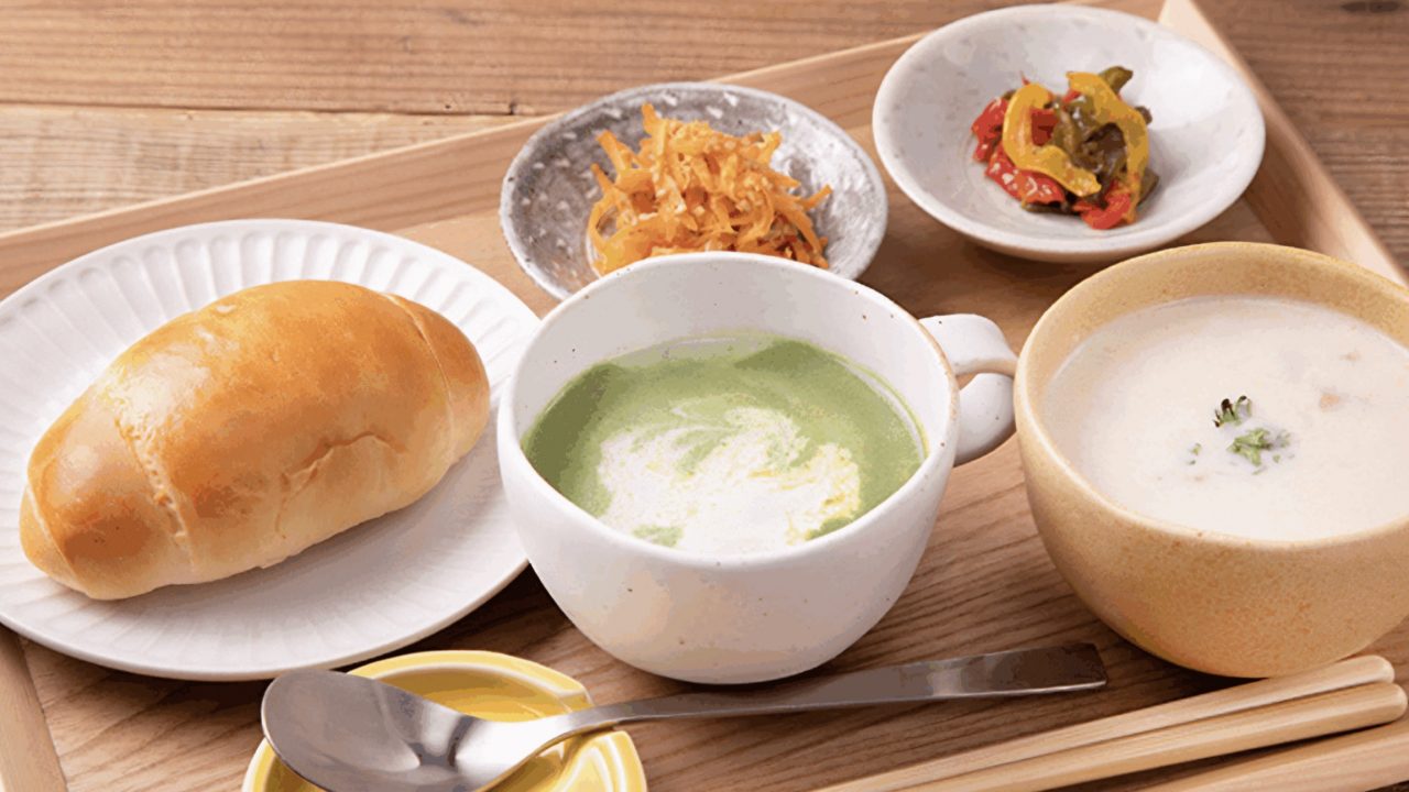 陽だまりのような店内では、季節の野菜をたっぷり使ったスープや、素材の味を活かしたやさしいお惣菜が並びます。